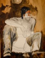Filling some background for edges and to determine values. I'll often work with a light wash of Burnt Umber then darker... hunting values which can set overall 'voice' of piece