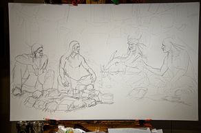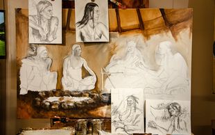 Pre-sketched faces for reference. Note 'leader' or 'chief' head dressing and style. I wanted to try for an older/elderly man
